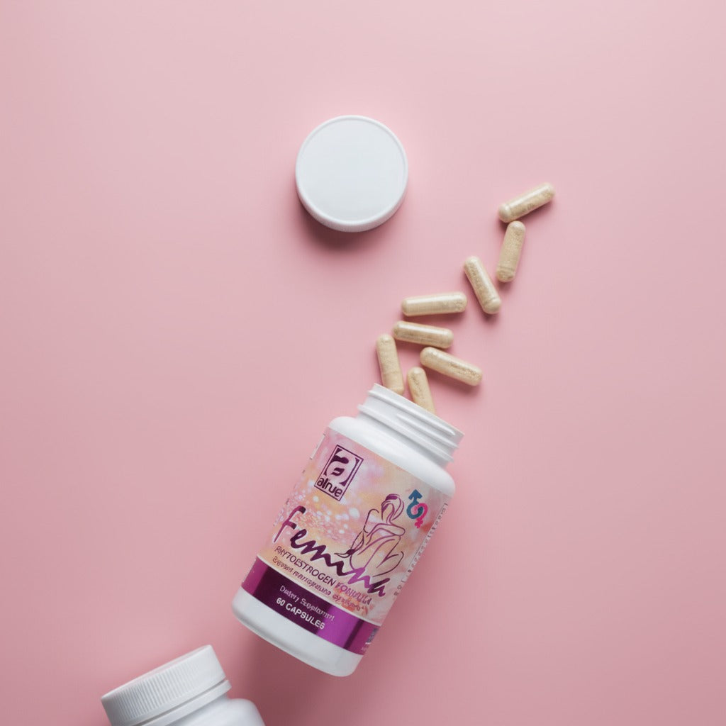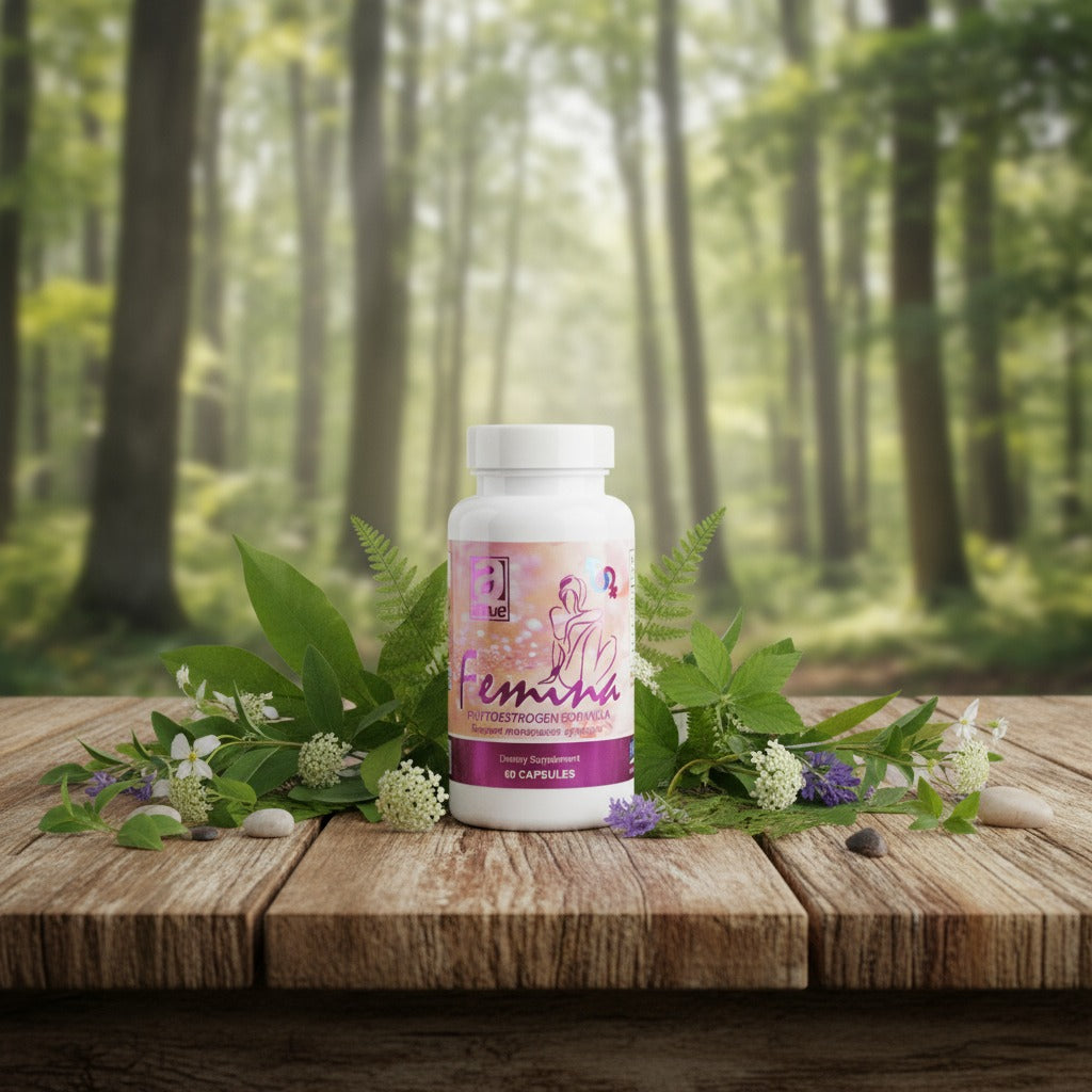 Suplemento natural con fitoestrógenos que ayuda a equilibrar las hormonas femeninas y aliviar los síntomas de la menopausia y el síndrome premenstrual.